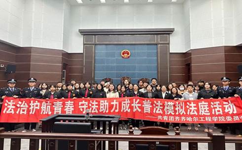 “砰,现在开庭!”随着庄严的法槌声响起,10月19日,校团委在齐齐哈尔市中级人民法院举办的“法治护航青春 守法助力成长”普法模拟法庭正式“开庭”。学生在“到梦空间”APP报名,共有50余人参加,分别扮演角色或参加旁听。活动由校团委组织部部长史源樟主持。模拟法庭审理的是一起因校园霸凌引发的故意伤害案件。参与模拟法庭的12名同学通过认真学习和准备,沉浸式融入审判长、公诉人、书记员、被告人、司法警察等角色。庭审...