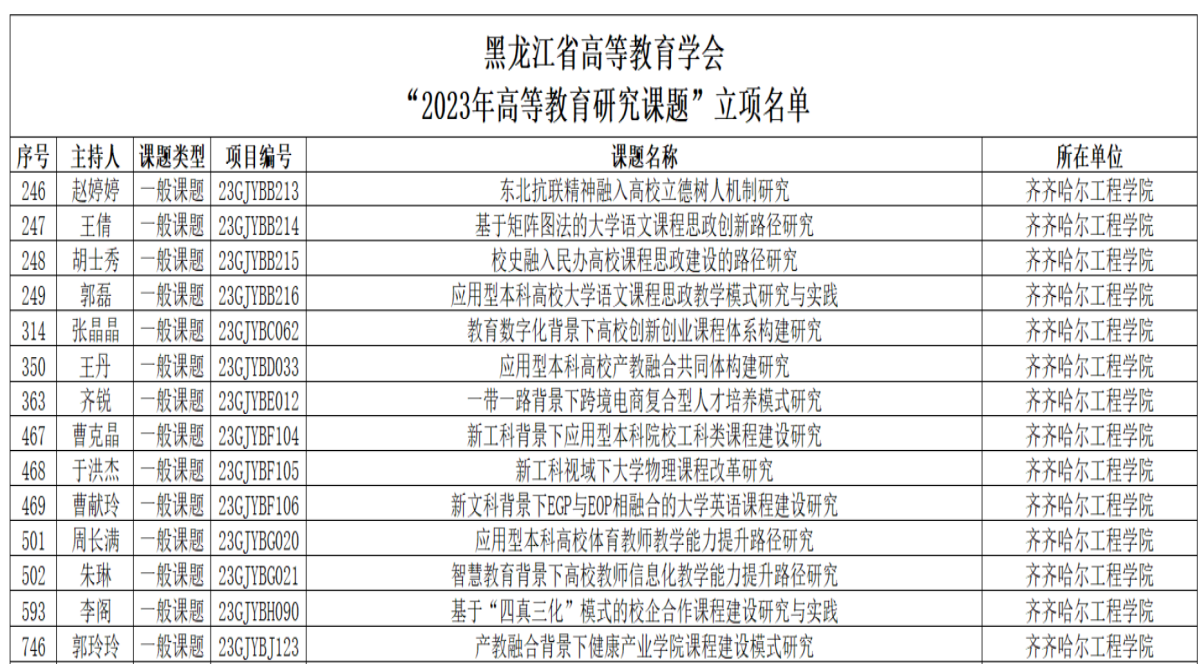 近日,黑龙江省高等教育学会公布“2023年高等教育研究课题”立项评审结果,学校赵婷婷申报的《东北抗联精神融入高校立德树人机制研究》等14项课题获批立项。近年来,伟德官网广大教师紧紧围绕学校应用型课程建设实践,深入开展教育教学及高等教育相关研究,积累了较为丰富的科研基础。此次获批的课题既是对过去伟德官网相关研究的总结提升,也是进一步加强高等教育研究的新起点,学校科研处将指导各课题组做好开题、过程管理、结题等...