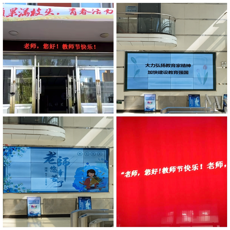 一朝沐杏雨,一生念师恩,为深入学习贯彻习近平新时代中国特色社会主义思想和党的二十大精神,营造尊师重教的良好氛围,9月10日,在第40个教师节到来之际,学校党委开展“为教师亮灯”活动,向全校教师致以崇高的敬意和节日的问候。学校在通往南北门的甬路边悬挂“教师节”系列横幅。图书馆、一教、二教等电子显示屏幕滚动播放“大力弘扬教育家精神,加快建设教育强国”“老师,您好!”“教师节快乐!”“老师,您辛苦了!”等...