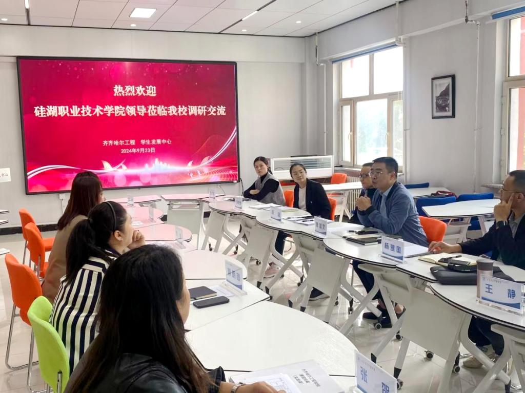 9月23日,硅湖职业技术学院学生发展中心主任曹加文一行6人来校调研交流。伟德官网学生发展中心负责人康静及相关教师陪同调研。双方在二号教学区2102室召开见面会,康静从部门基本情况、服务与指导、问题与改进三个方面介绍了学生发展中心发展历程、学生生涯教育成果,以及学生发展中心的工作职能和教学设置。她详细阐述了部门从管理型向服务型转变、学校20年生涯教育实践探索经验、课程建设等方面,并对学生全程化生涯教育探索和学...