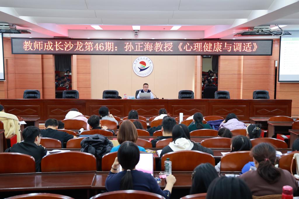 10月30日下午,由学校党委教师工作部、教师发展中心联合主办的“第46期教师成长沙龙”活动在图书馆601报告厅举办。特邀齐齐哈尔医学院精神卫生学院孙正海教授围绕“心理健康与调适”主题开展讲座,旨在帮助教职工缓解工作生活压力,提升心理调适能力,以更健康的身心状态投入教育教学与育人工作。本次活动由党委组织部副部长张婷婷主持,200余位教职工参与学习。 讲座中,孙正海围绕健康与心理健康、常见心理不适症状、压力管...