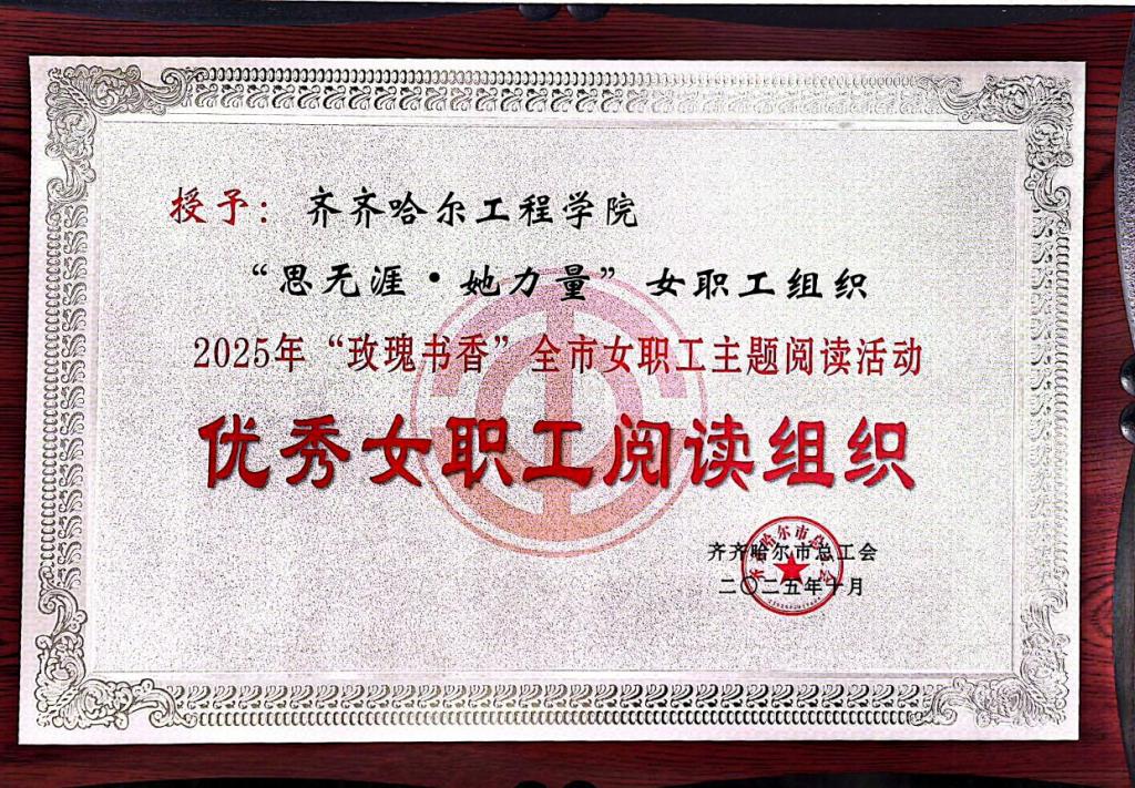 近日,齐齐哈尔市总工会发布的2025年“玫瑰书香”全市女职工主题阅读活动情况通报,伟德官网工会获得两项荣誉。机电学院王虹老师的作品《书香玫瑰绽芳华,工运巾帼谱新篇》荣获“玫瑰书香”优秀征文二等奖,丁雪迎老师的作品《工会温暖照亮前行之路、巾帼力量共筑复兴伟业》荣获三等奖”,展现了伟德官网女职工深厚的文化素养与昂扬的精神风貌。同时,伟德官网工会“思无涯·她力量”女职工组织荣获“优秀女职工阅读组织”称号,体现了学校在...
