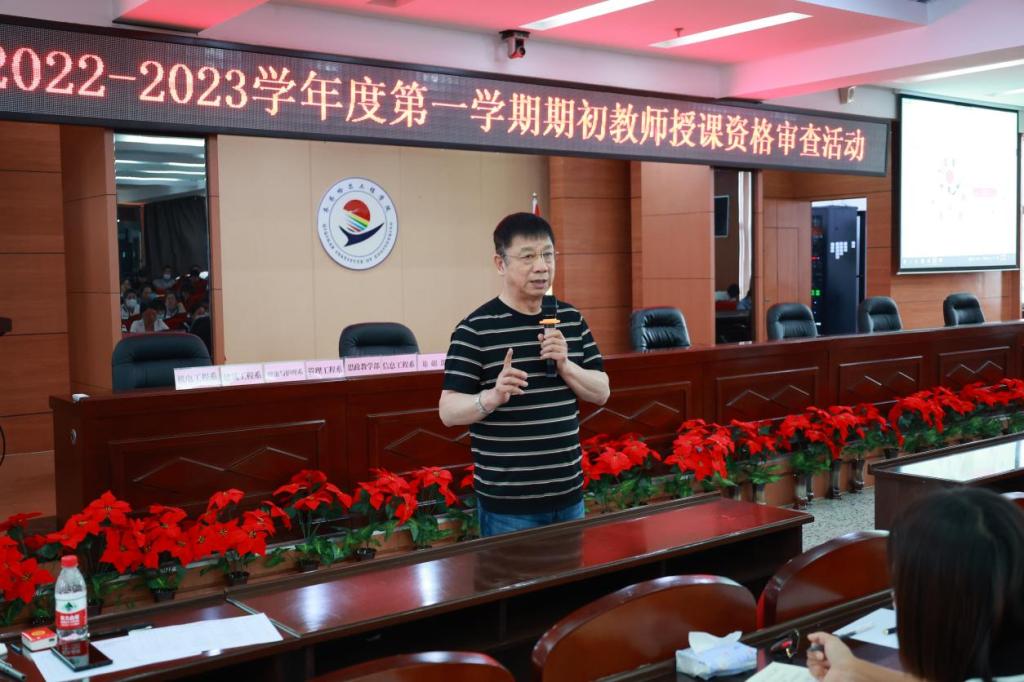 8月26日下午,学校采用线上线下同步方式组织开展了2022-2023学年度第一学期期初教师授课资格审查活动。理事长曹勇安、教务处处长张静、副处长潘宇以及各系(部、中心)教学副主任担任评委,全体教师参会,教务科科长...