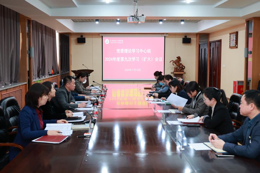 为进一步深入学习贯彻落实全国教育大会精神,深刻领会习近平总书记重要讲话的精神实质和核心要义,确保学习入脑入心,落实落靠,见行见效,11月1日下午,学校党委理论学习中心组2024年度第八次学习(扩大)会议在图书馆603南会议室召开,专题学习全国教育大会精神,党委书记郭伟东主持会议。院长、党委副书记曹然彬,党委副书记、常务副院长陈景鑫,党委委员、副院长白雪,副院长张静,党委委员、党委组织部部长、党委教师工作...