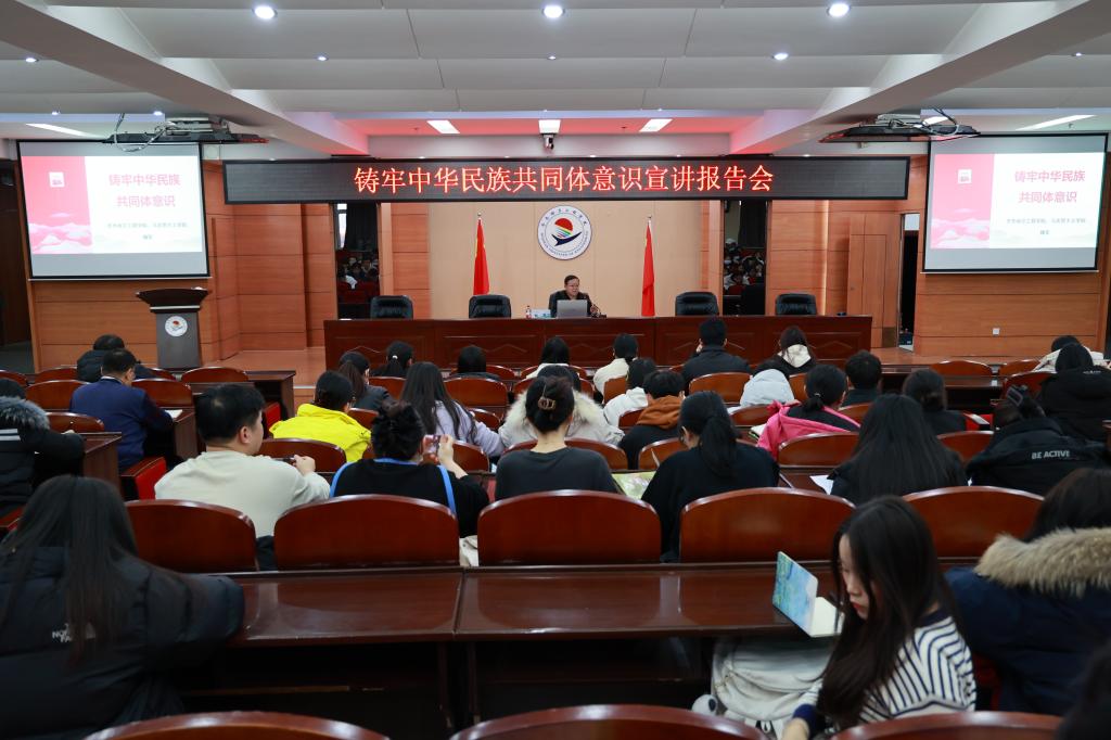 为深入贯彻落实习近平总书记关于加强和改进民族工作的重要思想,引导广大师生深入理解中华民族共同体意识的深刻内涵,12月6日下午,学校党委在图书馆601报告厅举办“铸牢中华民族共同体意识”宣讲报告会,本次报告会邀请马克思主义学院教授魏军主讲,学校各民主党派全体成员、无党派人士、各基层党组织书记以及学生代表参加。魏军以“铸牢中华民族共同体意识”为题作报告,对从中华文明看中华民族共同体意识的基本概念、准确...