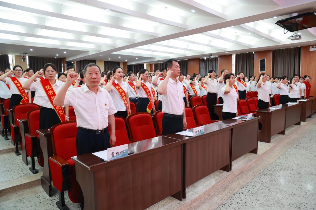 为庆祝中国共产党成立104周年,表彰先进,进一步激励全校各级党组织和全体党员推进党纪学习教育走深走实、推动学校党建与业务工作深度融合,7月1日下午,学校在图书馆601报告厅举行庆祝中国共产党成立104周年暨“两优一先”表彰大会。校级党员领导干部、受表彰的先进集体代表、先进个人以及师生党员参加。校长、党委副书记曹然彬主持会议。大会在庄严的国歌声中拉开帷幕,与会人员全体起立,齐唱国歌。校党委委员、党委组织部部...