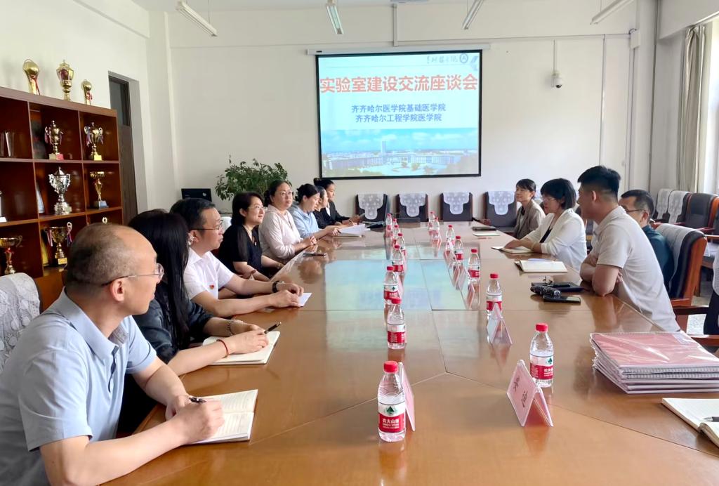 6月11日下午,医学院院长孙强、党委书记姜佳率领实验中心负责人张林琳等一行7人前往齐齐哈尔医学院基础医学院开展交流考察活动。基础医学院党委书记潘洪明、院长林岩、副院长沈雷等领导热情接待。座谈会上,双方就各自学院的基本情况进行了简要介绍。随后,考察团实地走访了基础医学院3个实验中心与生命科学馆。在生物技术实验中心,陈萍主任依托《分子生物学》《医学遗传学》对生物实验教学工作的具体流程进行了详细讲解;机...