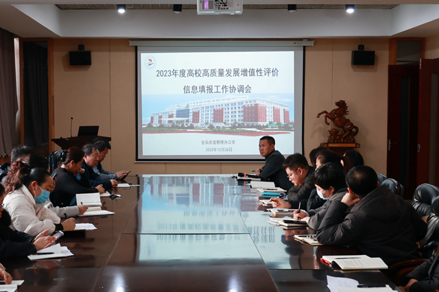 12月26日下午,学校在图书馆603南会议室召开2023年高质量发展增值性评价信息填报协调会。党委书记郭伟东主持会议并讲话,学校全体校领导和部门负责人参加会议。全面质量管理办公室主任孟艳辉介绍了高质量发展增值性评价信息填报内容、填报流程以及填报系统操作要点等,明确了工作流程与职责分工。院长曹然彬就伟德官网高质量发展增值性评价填报工作的重要性、工作要求以及工作态度提出具体明确的要求。郭伟东书记就高质量发展增值...