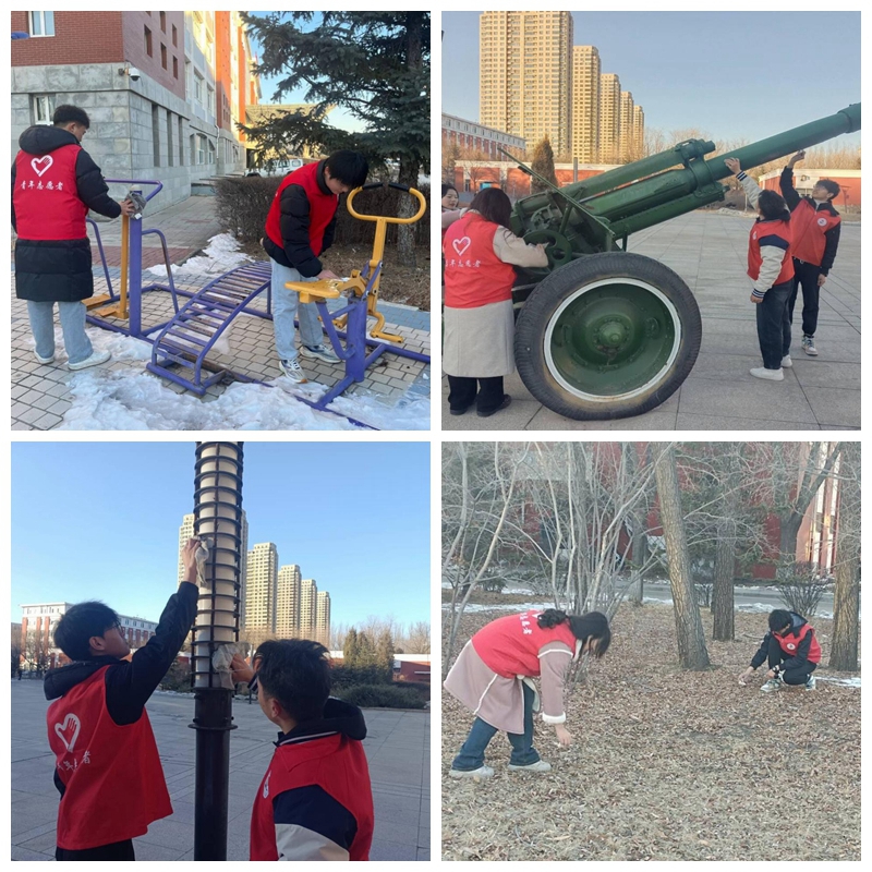 在和煦的春风中,全国第61个“3.5”学雷锋纪念日如期而至。校团委开展了“弘扬雷锋精神,绽放青春风采”丰富多彩的雷锋月主题活动,广大青年志愿者如春天的使者,在校内、外掀起一股学习雷锋精神及弘扬“奉献、友爱、互助、进步”的志愿精神的热潮,以实际行动书写新时代的雷锋故事。活动期间,大学生青年志愿者协会的志愿者们对学校健身器械、桌椅和路灯进行清洁和维护,认真打扫九思廊每个角落,捡拾花坛、草坪上的纸屑和废旧...