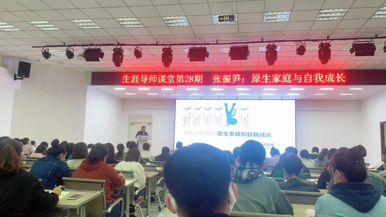 9月22日下午,第28期生涯导师课堂在二号教学区2508室举行,本期生涯导师课堂邀请张振笋副院长主讲,主题为“原生家庭与自我成长”,来自全校各部门140位生涯导师参加活动。 讲座中,张副院长以“新生拉练”为...